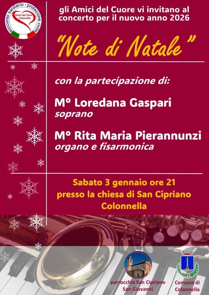 Il concerto “Note di Natale” vedrà l’esibizione del soprano Loredana Gaspari e del maestro Rita Maria Pierannunzi (organo e fisarmonica).