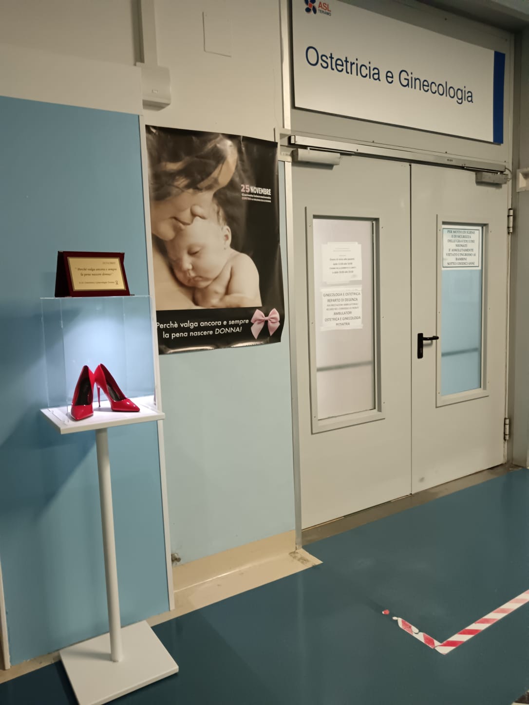Al “Mazzini” all’ingresso è stata sistemata, con la collaborazione della Trade service, una guida rossa con scarpette rosse simbolo della lotta alla violenza contro le donne. Nell’atrio, inoltre, è stata allestita “Malamore”, una piccola mostra con opere d’arte sullo stesso tema dei maestri Marco Pace, Bruno Chiodi e Vincenzo Ranalli. L’ingresso principale, inoltre, viene illuminato di rosso per tutto il periodo dell’(H) Open week. Infine, nell’atrio prospiciente l’unità operativa di Ostetricia e Ginecologia è stata installata, per iniziativa del personale del reparto, una bacheca con scarpette rosse e una targa con lo slogan della campagna di quest’anno: “Perché valga ancora e sempre la pena di nascere donna”.