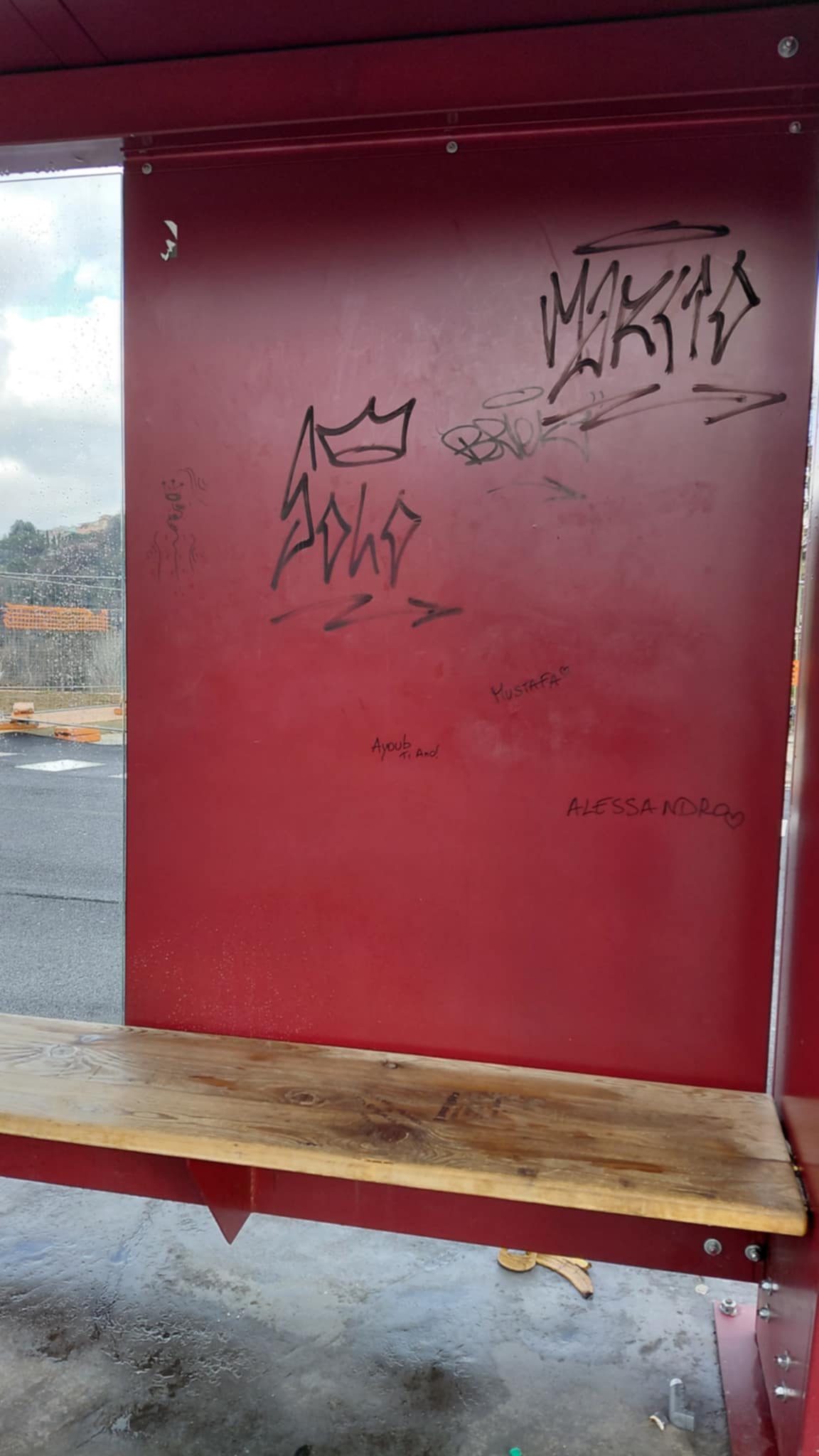 Già rotte e imbrattate le nuove pensiline di piazza San Francesco FOTO