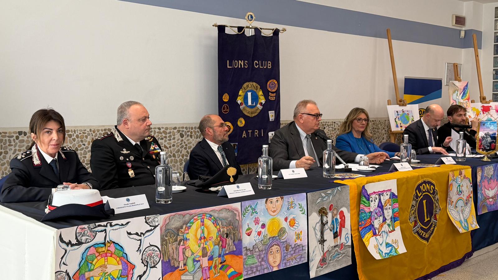 Sono intervenuti per il Lions: Maria Grazia Valentini (Officer V, VI e VII Circoscrizione Poster per la Pace), Antonino Orsatti (Presidente V Circoscrizione e moderatore dell’evento) e Luciano Di Simone (Presidente Lions Club Atri Terre del Cerrano).