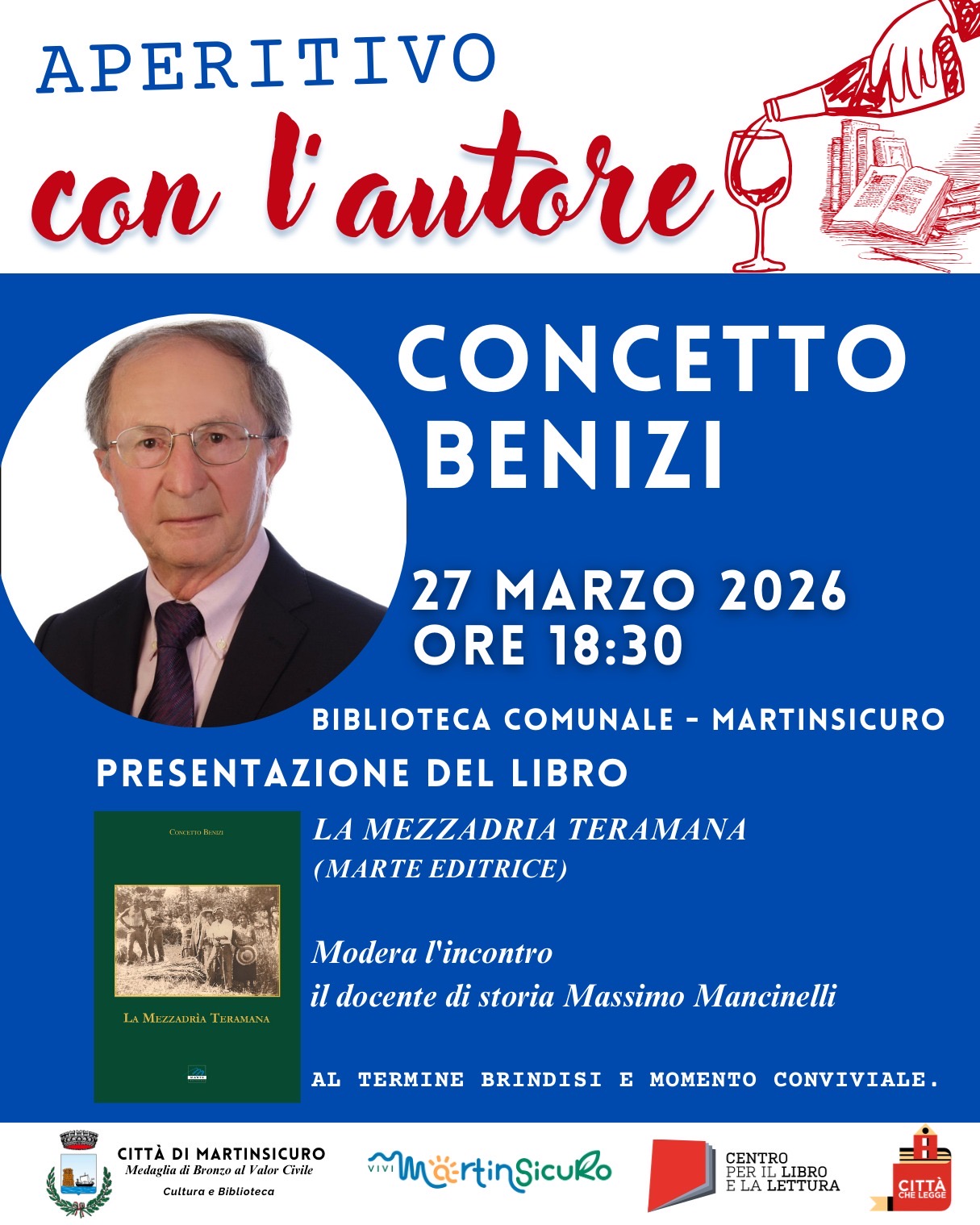 Si parte venerdì 27 marzo 2026, alle ore 18:30, presso la Biblioteca Comunale di Martinsicuro, con il primo appuntamento della nuova rassegna “Aperitivo con l’autore”, che vedrà protagonista lo scrittore Concetto Benizi.