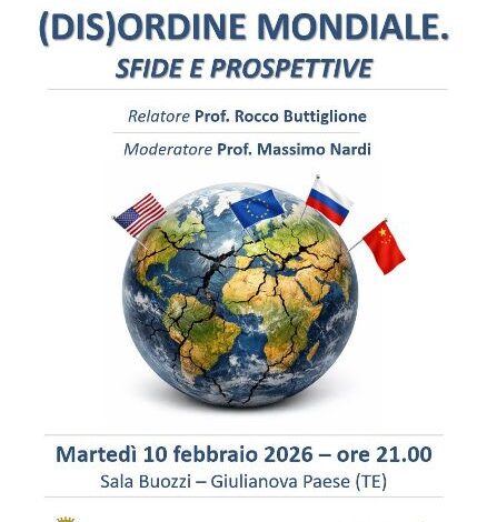 Giulianova. Il professor Rocco Buttiglione interverrà, martedì 10 febbraio, alle 21:00, in sala Buozzi, sul tema “L’Europa e il nuovo (dis)ordine mondiale”.