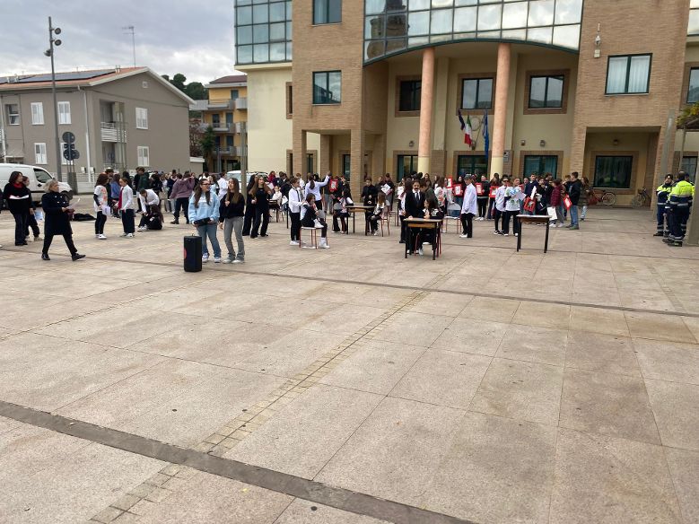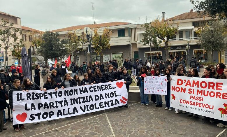 Roseto. Uno spettacolo in piazza della Repubblica, curato dagli studenti e dalle studentesse della Scuola Secondaria di Primo Grado D’Annunzio e un corteo rumoroso fino alla Villa Comunale per dire basta alla violenza di genere.