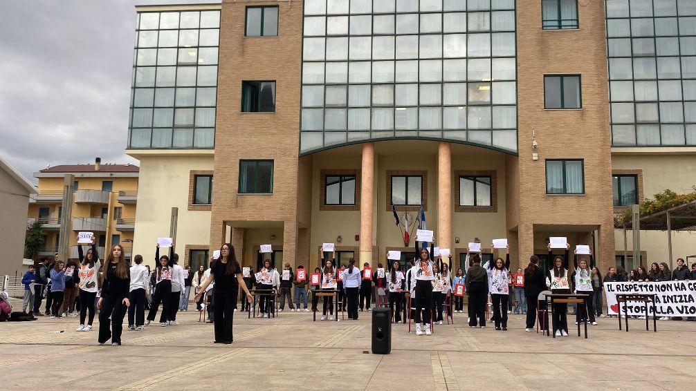 L’EVENTO. La manifestazione ha preso il via in piazza della Repubblica con uno momento fatto di letture e caratterizzato da una coreografia di gruppo a cura degli studenti e delle studentesse della d’Annunzio coordinate dalla professoressa Sandra De Colli. Poi, il corteo è partito per la sua marcia colorata e rumorosa: un percorso che ha attraversato la via nazionale in direzione Sud, con i ragazzi e le ragazze, muniti di striscioni, che hanno intonato canti e slogan contro la violenza di genere.