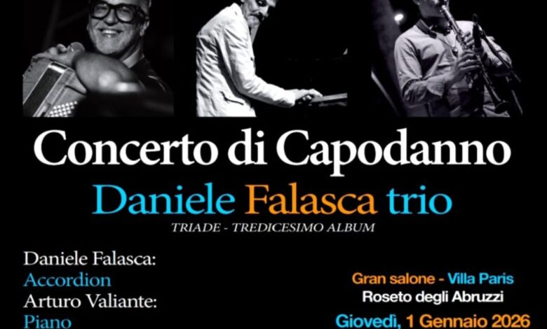 “Inaugurare il nuovo anno con un evento di questa caratura culturale è per noi motivo di grande orgoglio – affermano il Sindaco Mario Nugnes, l’Assessore al Turismo Annalisa D’Elpidio e l’Assessore alla Cultura Francesco Luciani – Ospitare la musica di Daniele Falasca e del suo trio a Villa Paris non significa solo offrire un concerto di altissimo livello ai cittadini di Roseto, ma significa soprattutto ritrovarsi come comunità. In un momento di festa come il Capodanno, la musica diventa il collante ideale per rafforzare il nostro senso di appartenenza e per proiettarci verso il futuro con armonia e condivisione. Non c’è modo migliore di augurare un buon 2026 ai nostri cittadini se non attraverso artisti che portano il nome della nostra città nel mondo”.