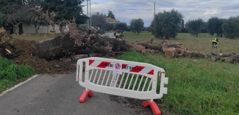 Nel momento della caduta non c’erano mezzi in transito e la quercia si trovava in un tereno privato, al confine con la sede stradale.