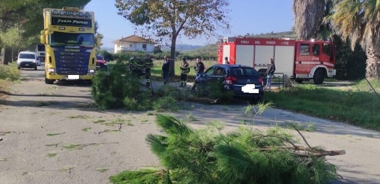 L’auto, danneggiata dalla caduta del ramo, è stata poi recuperata da un carro attrezzi.