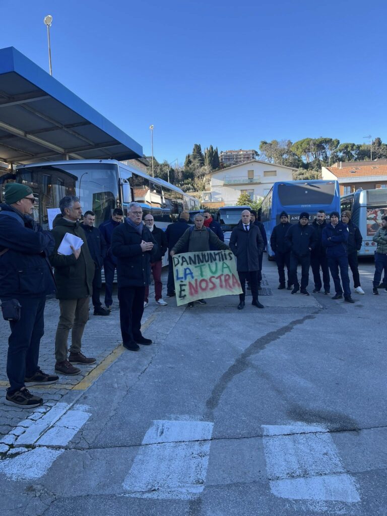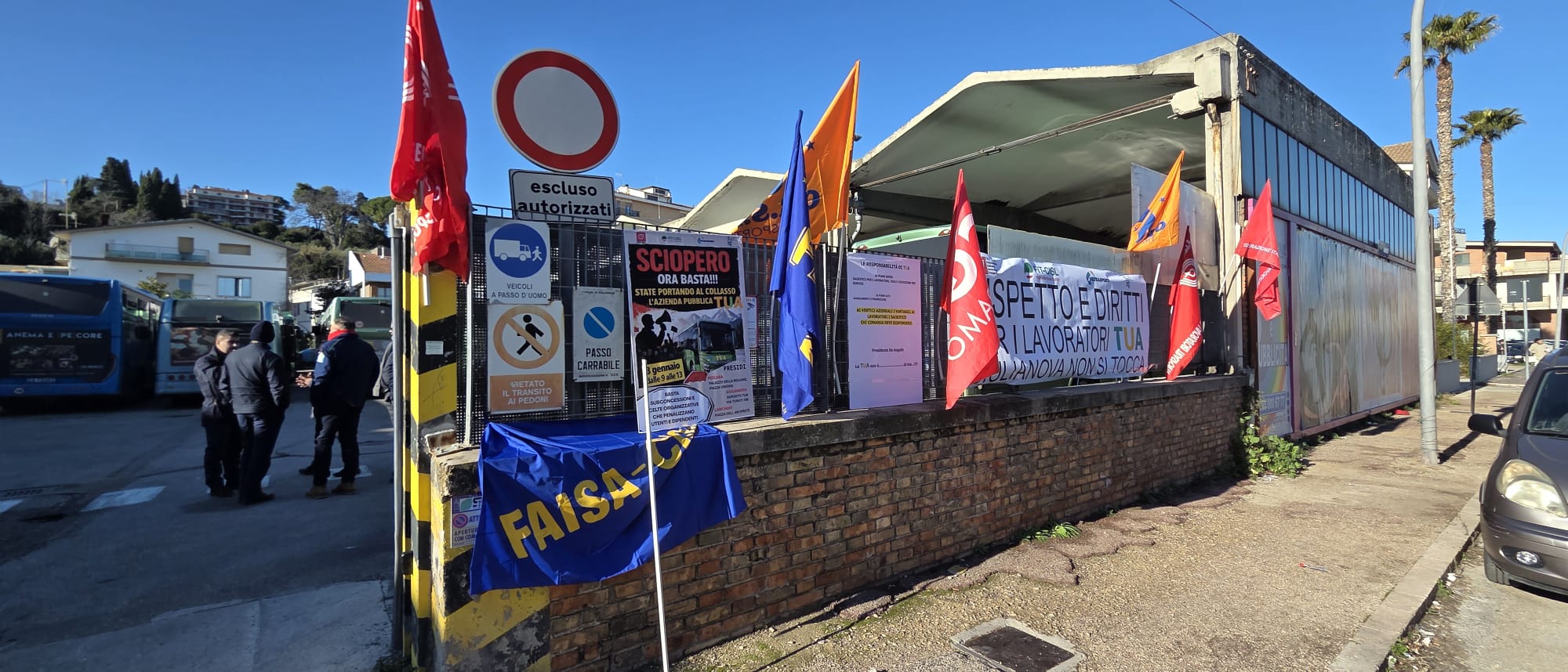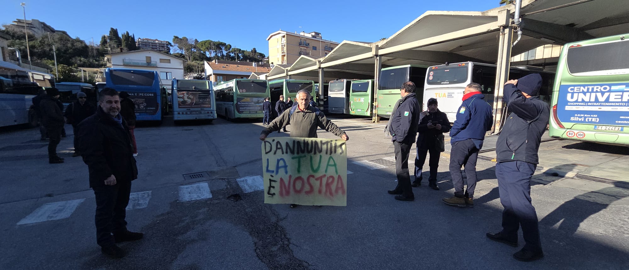 Giulianova. Sciopero di 4 ore del trasporto pubblico, in Abruzzo, e presidio dei lavoratori. Anche a Giulianova, dinanzi al deposito dei mezzi, i lavoratori hanno incrociato le braccia, ribadendo quelle che erano le regioni dello sciopero, anche in relazione alle problematiche dell’officina di Giulianova e del comparto provinciale.