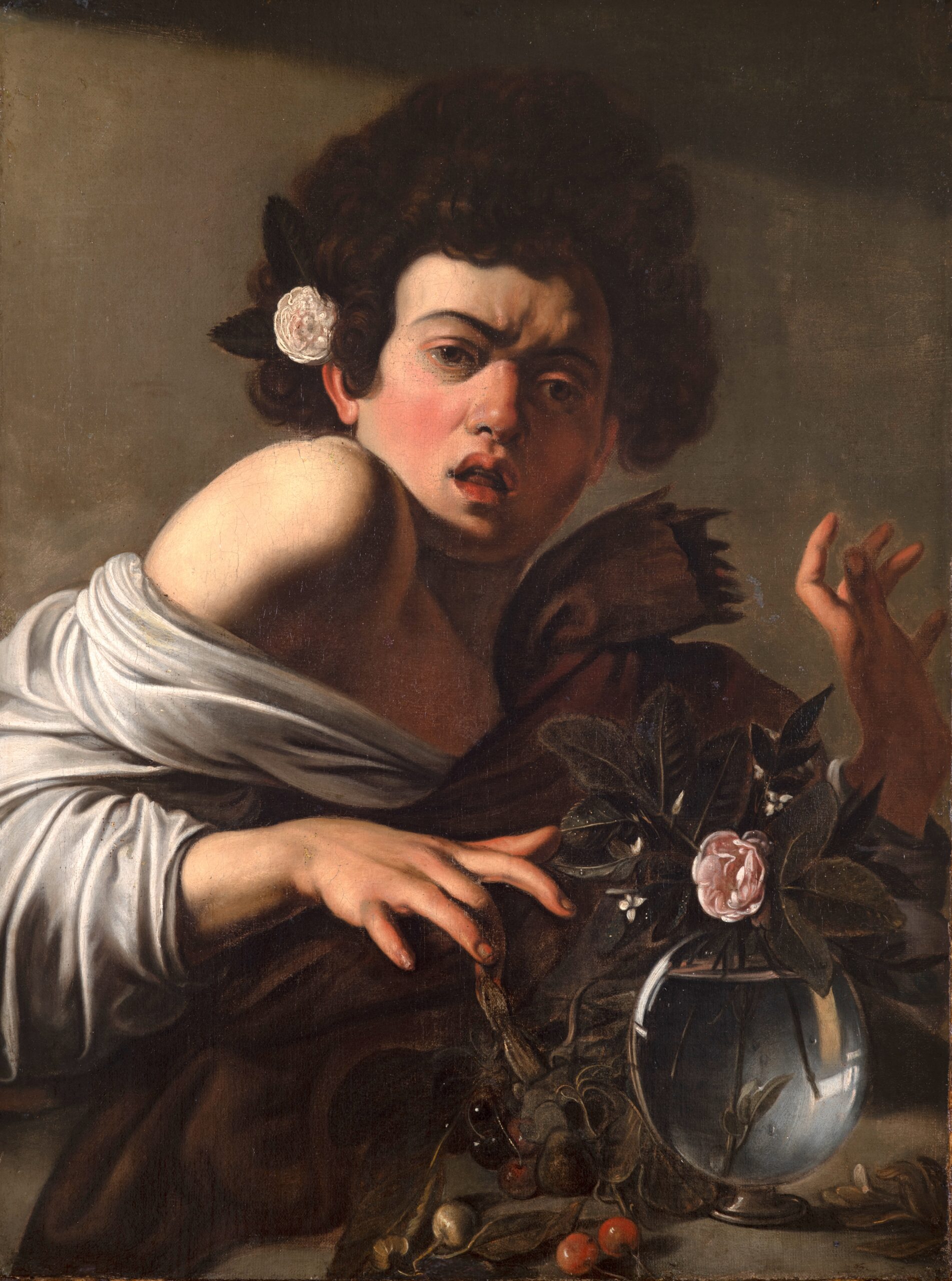 Quattro tra le più significative opere del Museo, in particolare, sono state inserite in un percorso tematico-cronologico (fine ‘500-metà ‘600) che traccia l’evoluzione dal tardo Manierismo al Caravaggismo, includendo correnti concorrenti come il classicismo. Culmine dell’esposizione, che esplora transizioni stilistiche (Baglione, Salini, Gentileschi vs Manfredi), influssi su scuole bolognesi (Reni, Spada) e napoletane (Azzolino, de Rosa, Caracciolo), e il genere della natura morta, sarà Il Ragazzo morso da un ramarro di Caravaggio. In rassegna sono presenti anche alcuni inediti, con l’obiettivo di stimolare il dibattito scientifico.