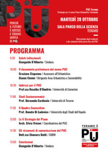 Teramo. Martedì 28 ottobre, al Parco della Scienza, l’Amministrazione comunale incontrerà i cittadini, gli ordini professionali e le associazioni edili e di categoria per illustrare e confrontarsi sulle strategie del nuovo Piano urbanistico comunale.