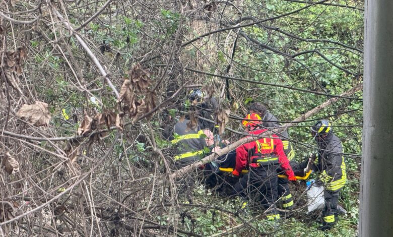 L’uomo è caduto nella zona sottostante, tra la vegetazione.
