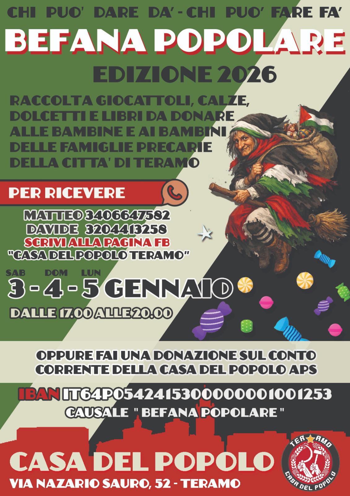 Torna la Befana Popolare della Casa del Popolo, un’iniziativa che ogni anno dimostra come sia possibile costruire risposte concrete dal basso.