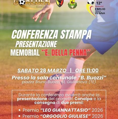 Giulianova. Si terrà sabato 28 marzo, alle 11.00, in sala Buozzi, la conferenza stampa di presentazione della XII edizione del “Torneo Memorial Emilio Della Penna”.