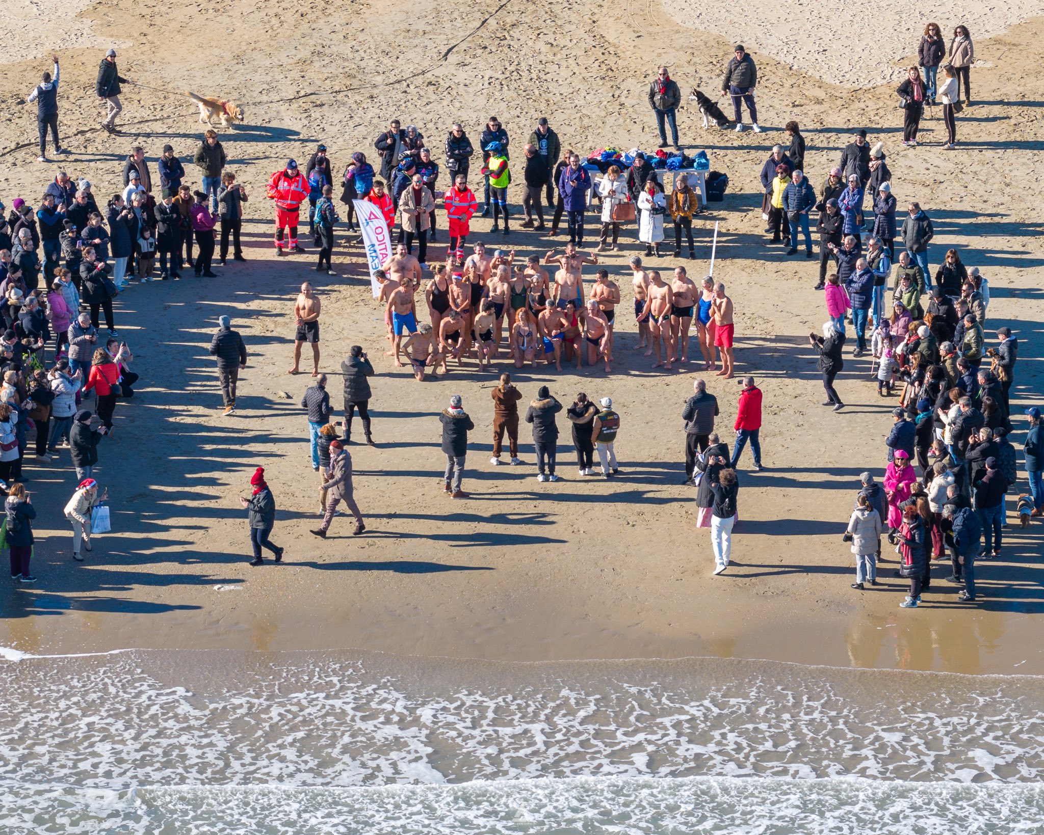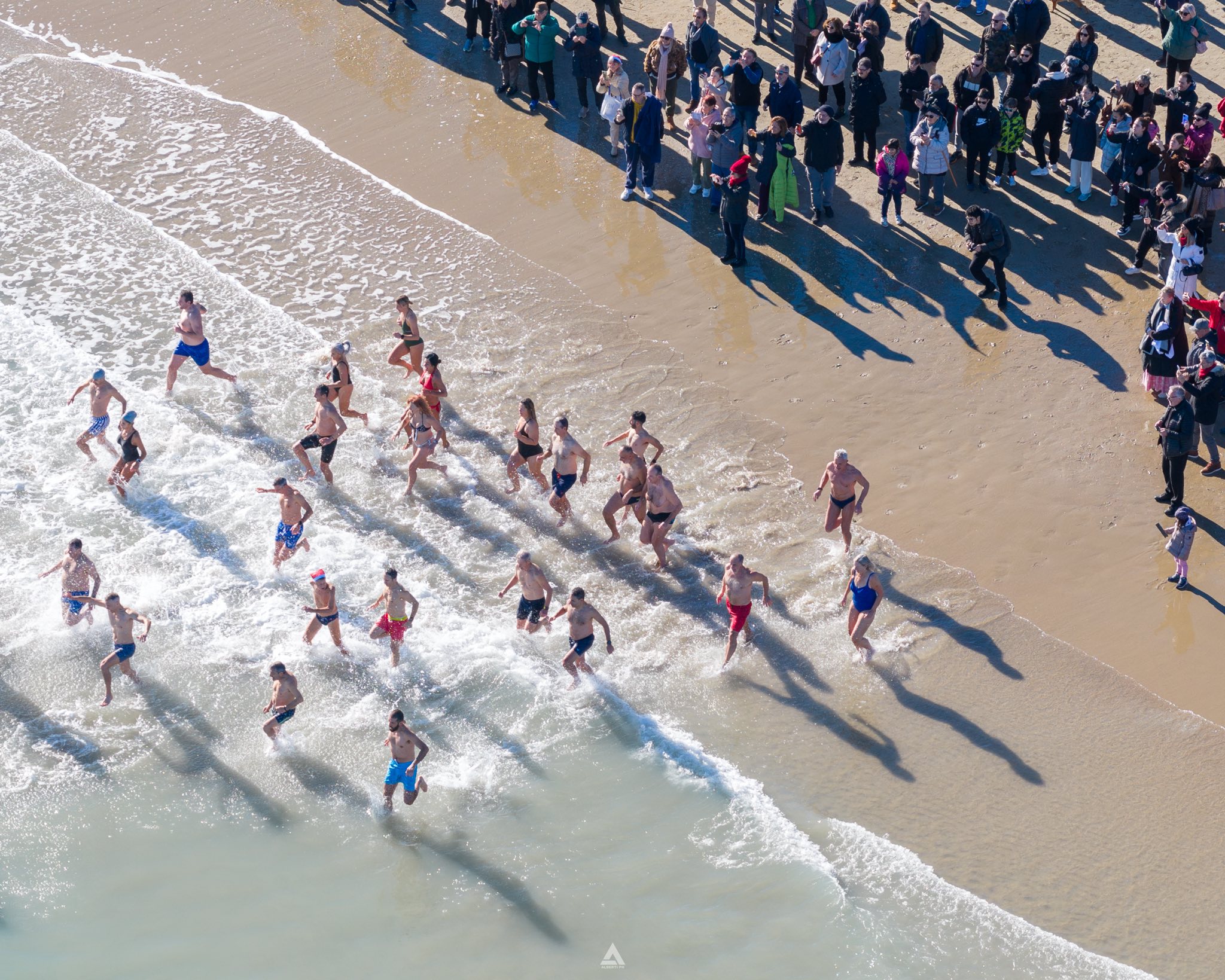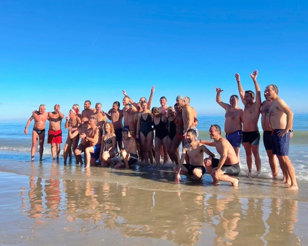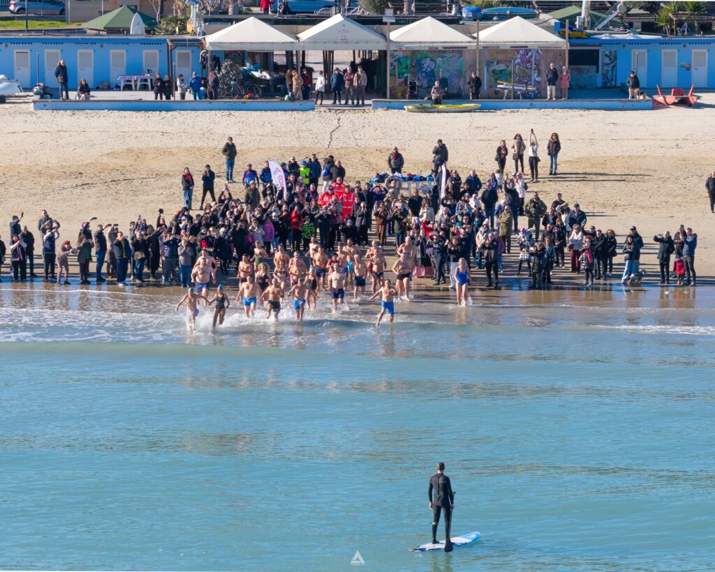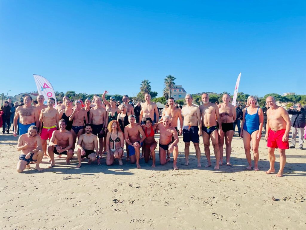Nutrita la rappresenta dell’associazione sportiva Adriatico Team, oltre ad amici e altri appassionati del bagno di Capodanno. Dopo il bagno foto di tiro e brindisi augurale per il nuovo anno.