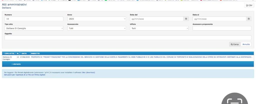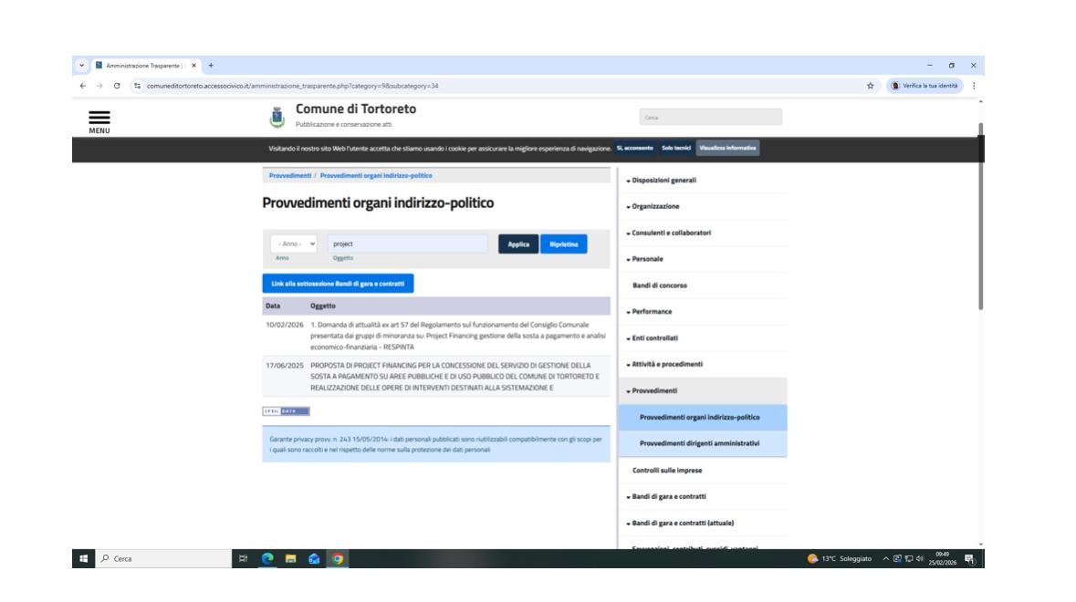 Pubblicità sul sito. Gli atti in questione sono presenti sul sito istituzionale dell’Ente sin dal mese di luglio 2025. (Si allegano screenshot della sezione dedicata).